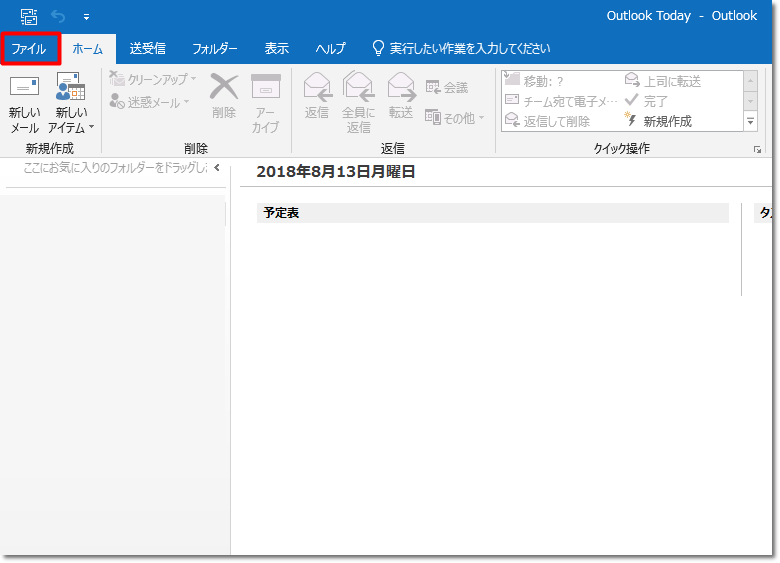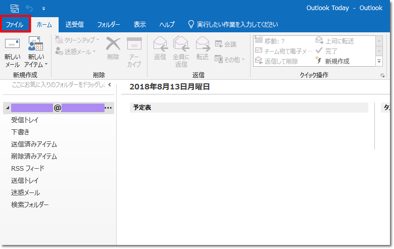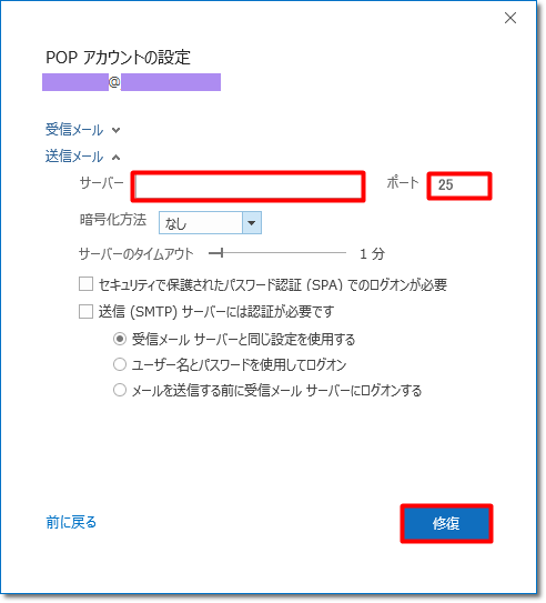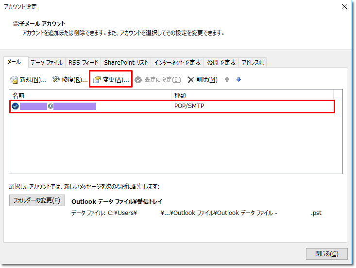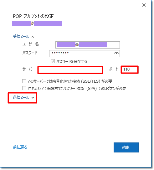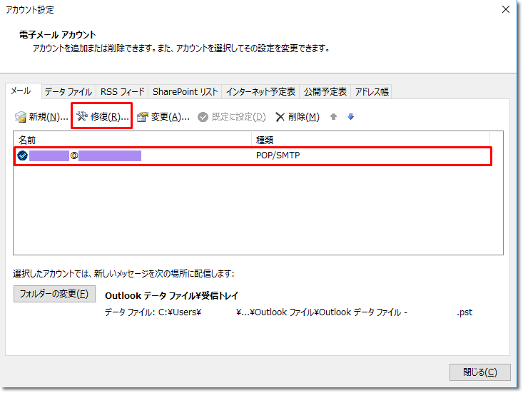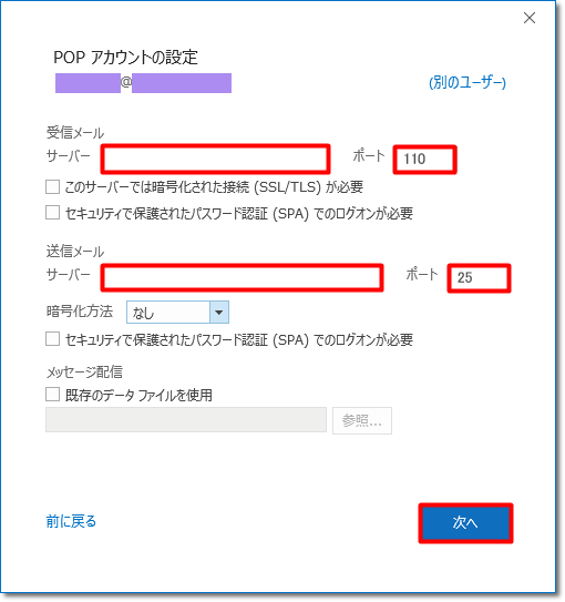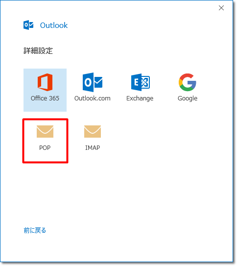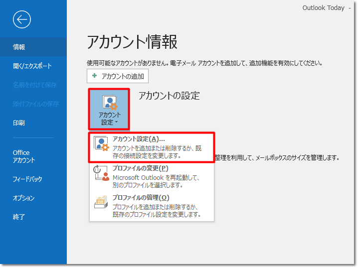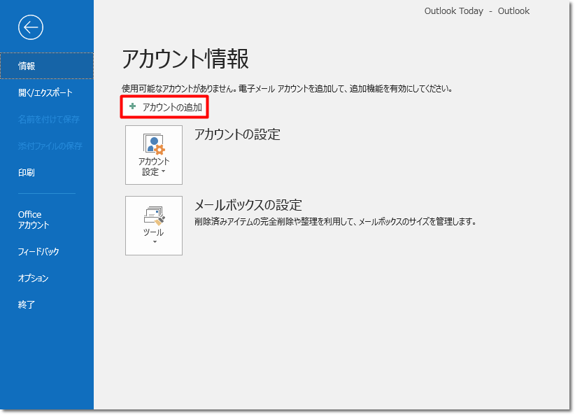 メールソフト|Outlook 2019 / 2016|初期設定方法|POP|暗号化なし|その1